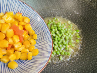 放入玉米粒、胡萝卜粒焯烫片刻捞起沥干水分