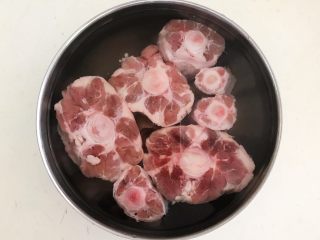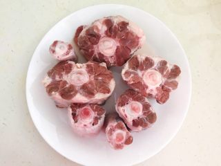 把牛放入冷水中浸泡60分钟,每隔20分钟换一次水,泡出牛骨中的血水