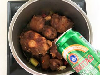 加入2罐啤酒,再加入适量开水,水量没过牛骨即可
