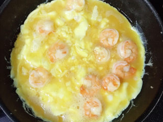 倒入蛋液,不要翻炒,轻轻推动底部。