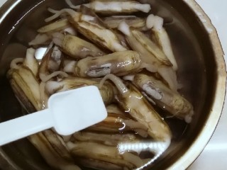 蛏子清洗一遍 泡在清水里 放入2克盐 吐沙1个小时