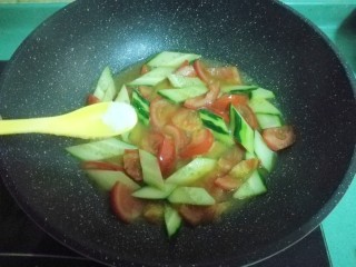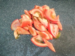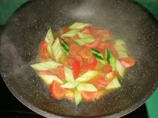 锅里无需再放油,直接放入番茄,炒至微软