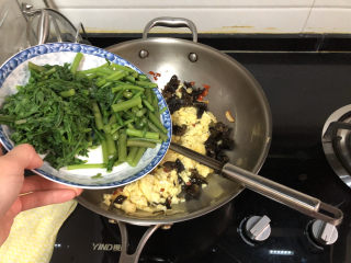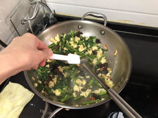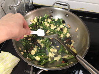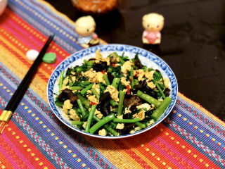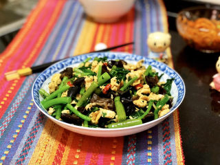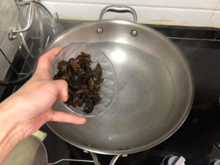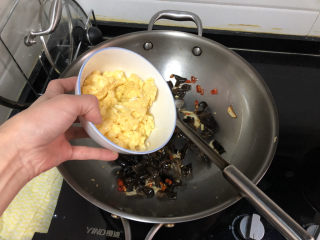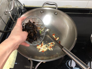 加入焯水的木耳,煸炒半分钟