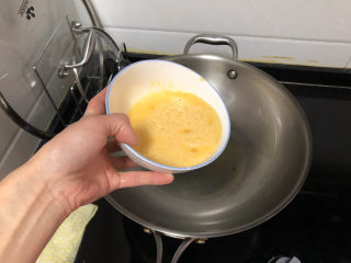 热锅加适量食用油,油温热,倒入蛋液