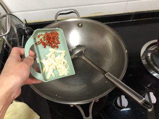 留底油,加入蒜片煸香