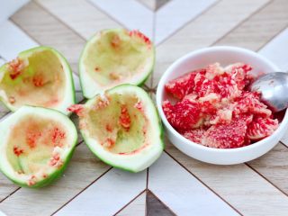 一切两开后,用勺子挖出果肉备用。