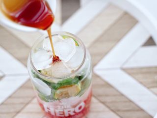 最后慢慢倒入放凉的普洱茶水,搅拌均匀后就可以喝咯。