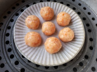 将搓好的丸子放进盘中,上锅隔水蒸,开锅后再蒸10分钟即可。
