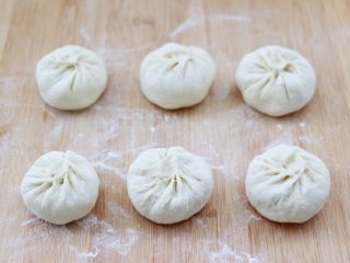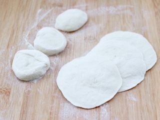 排气揉匀后,分剂子擀成圆形薄面皮。