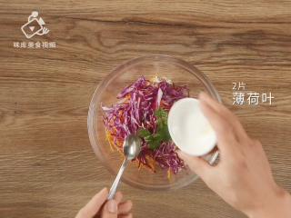 分别加入50g紫甘蓝丝、胡萝卜丝