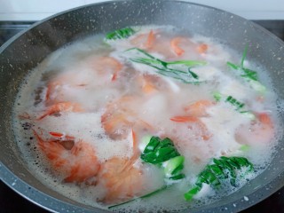 锅里的水烧开再把对虾放进去煮。减短对虾在锅里煮的时间,这样才会q弹好吃。