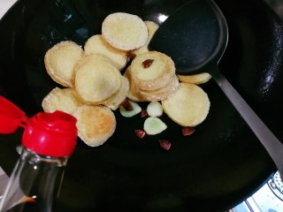 放入扳碎的八角一起煎出香味