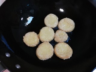 热锅热油放入素鸡中火煎黄