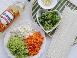 准备食材:2只、一把,适量,半截,一小把,蒜粒5颗。