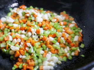 热锅热油,加入切好的素菜,大火翻炒熟后盛出待用。