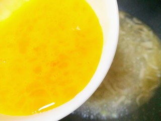 转小火倒入鸡蛋液。