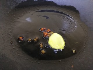 热锅凉油,油热放入,麻椒,姜片,小火炸出香味。