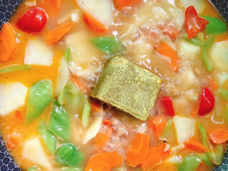 调成小火,放入块