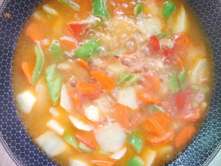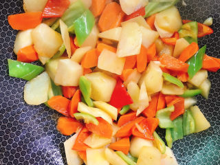 倒入蔬菜块翻炒2分钟