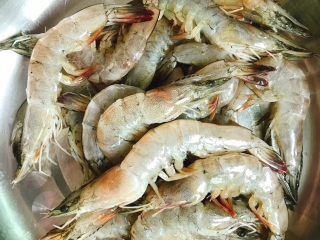 虾剪去虾须,开背