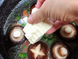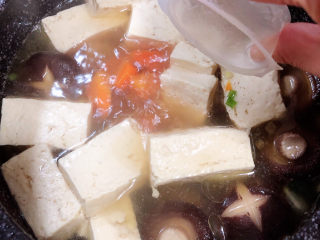 煮开锅后,放入一个骨汤浓汤宝。盖盖儿小火儿炖煮5分钟。