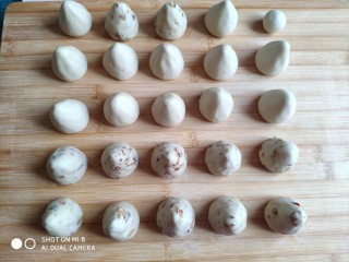 把两种粉团各自做成小窝头。