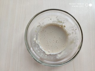 小碗中放入,加入一点点凉水,水不要多了,只需把酵母融化就可以。