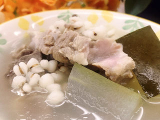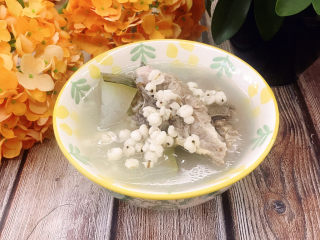 冬瓜润肺生津、化痰止咳、减肥降脂、美容养颜; 薏米有健脾去湿、舒筋除痹、清热排脓等功效。