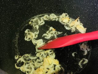 虾皮沥干水,加入锅中
