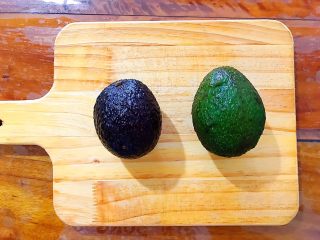 好,我们来区分一下! 左边的黑皮的牛油果是已经熟透了可以吃的!右边的牛油果还是绿皮,也就是说还需要摆放几天才能吃!