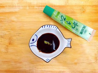 挤少许! 加多少芥末完全在于你自己的口味,不怕辣的就多加一点,怕的就少一点,随意!
