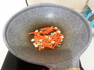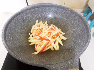 加入胡萝卜,翻炒1分钟