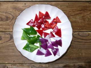 彩椒,洗净切滚刀片。