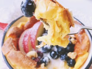 今日早餐营养指南:碳水(面粉)蛋白(鸡蛋酸奶)纤维V生素(各类水果 )我做的时候没有加糖,连最后的装饰没用糖粉,用的椰蓉。没加糖的味道嫩嫩的,加上有酸奶水果搭配吃起来味道刚好!喜欢给个关注呗……