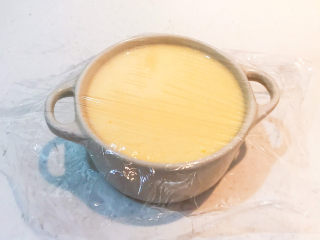 在蒸碗上面盖好耐高温保鲜膜