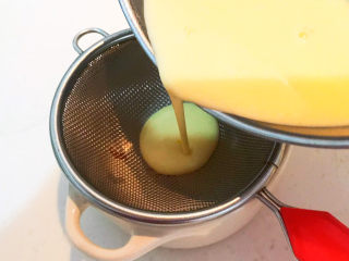把鸡蛋牛奶液过筛倒入蒸碗里