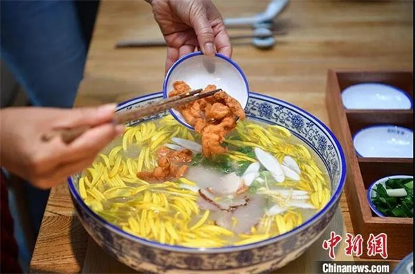 高汤鲜甜,但制作过程可谓是“煎熬”。王丽珠说,她每天凌晨3点起床熬煮高汤,“一边挥动大勺搅拌,一边拿捞勺捞出白沫,足足熬制5个小时。”这可是40年前,她传承自父亲的“秘方”。