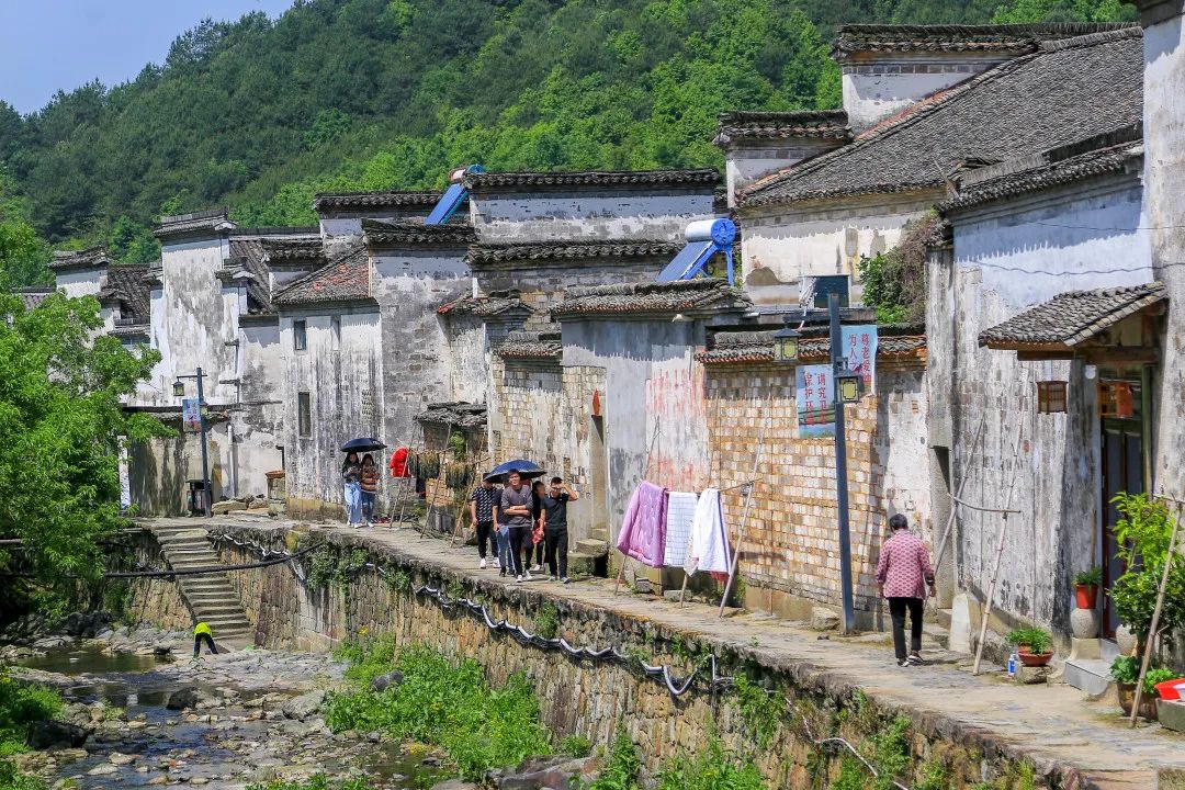 黄田村“依山造屋、傍水结村”,村庄立脚于河之北、山之甫。村中明沟暗渠通向每家每户,活水穿村而流,为整个村庄增添了灵力与活力。其建筑既有苏州园林的风格、宫廷建筑的恢弘,更有皖南建筑的特色。