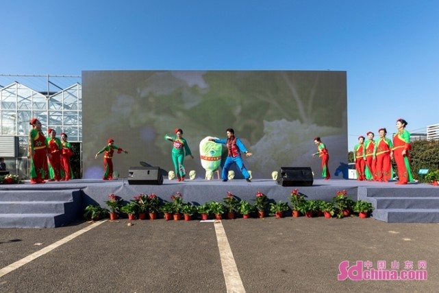 紧接着,与会嘉宾以共同推杆的方式开启大白菜开园仪式,“金色流沙”寓意白菜丰收。胶州大白菜文化展演环节随后上演,以胶州秧歌、茂腔、胶州八角鼓、胶州民歌联唱、吹打乐等方式展现百姓对胶州大白菜丰收的美好期盼。另外,由胶州市文联组织书法家、农工党青岛文化专委会联合九三学社书画家现场围绕大白菜进行现场笔会文艺创作,以此更好传播胶州大白菜。