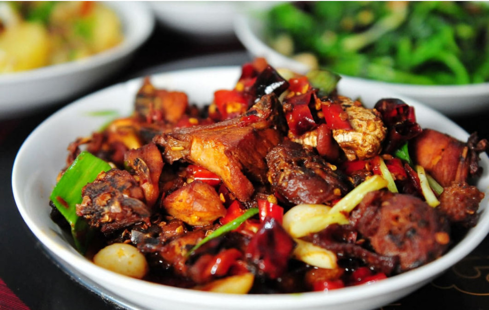 黔菜厨师尤其擅长烹制肉类,特别是野味,这与擅长打猎的少数民族部落密切相关。一种肉可以做成20多种菜肴,比如猪肉宴、牛肉宴、羊肉宴、蛇宴等等。