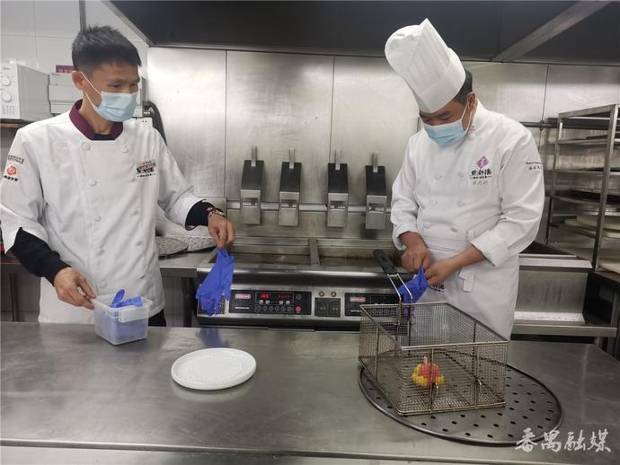 点心手工制作完成后,还要进行油炸。黄光明告诉小禺儿,别小看了这道工序,油炸既要掌握温度火候,又要讲究油炸时间,要把握得十分准确,否则就达不到色香味俱全的效果。