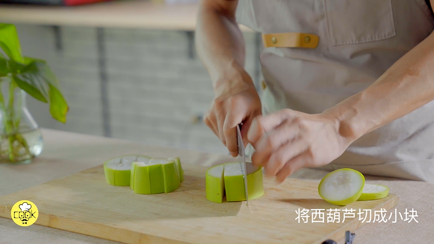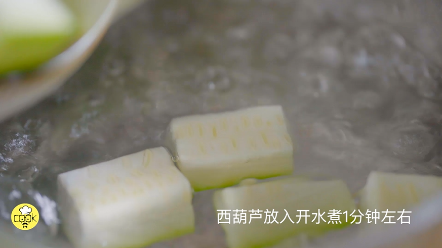 1.将西葫芦切成小块,放进开水中煮1分钟