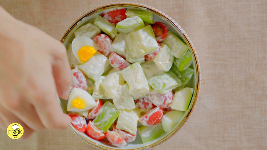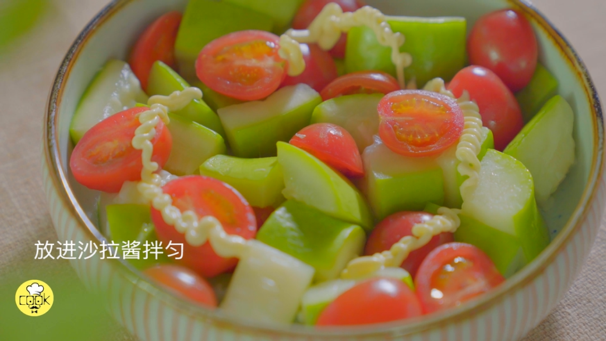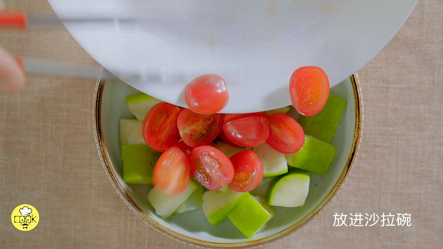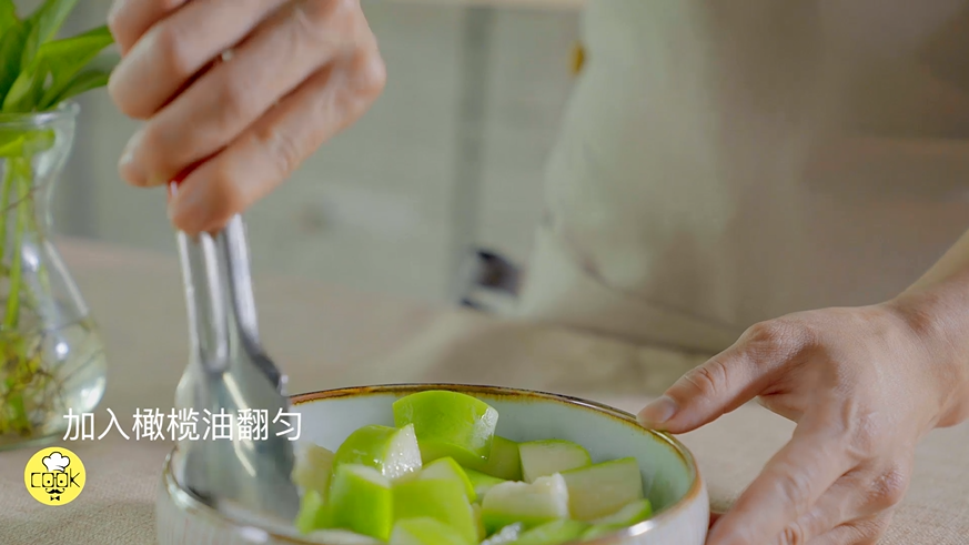 2.将煮好的西葫芦捞出,放适量橄榄油拌匀
