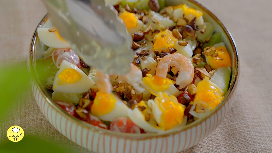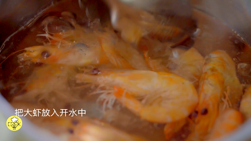 7.把大虾放入开水中煮熟,晾凉后去剥壳取虾肉备用