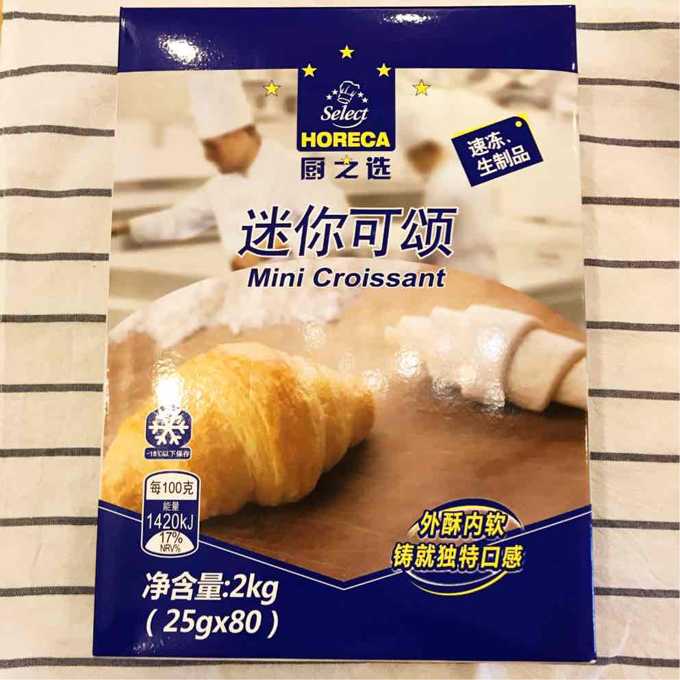 如果要做烘焙早餐食品,那么食材的新鲜和品质的保障对烘焙后美食的口感至关重要。本款美食选用的”厨之选“迷你可颂面包胚,采购于麦德龙进口超市。