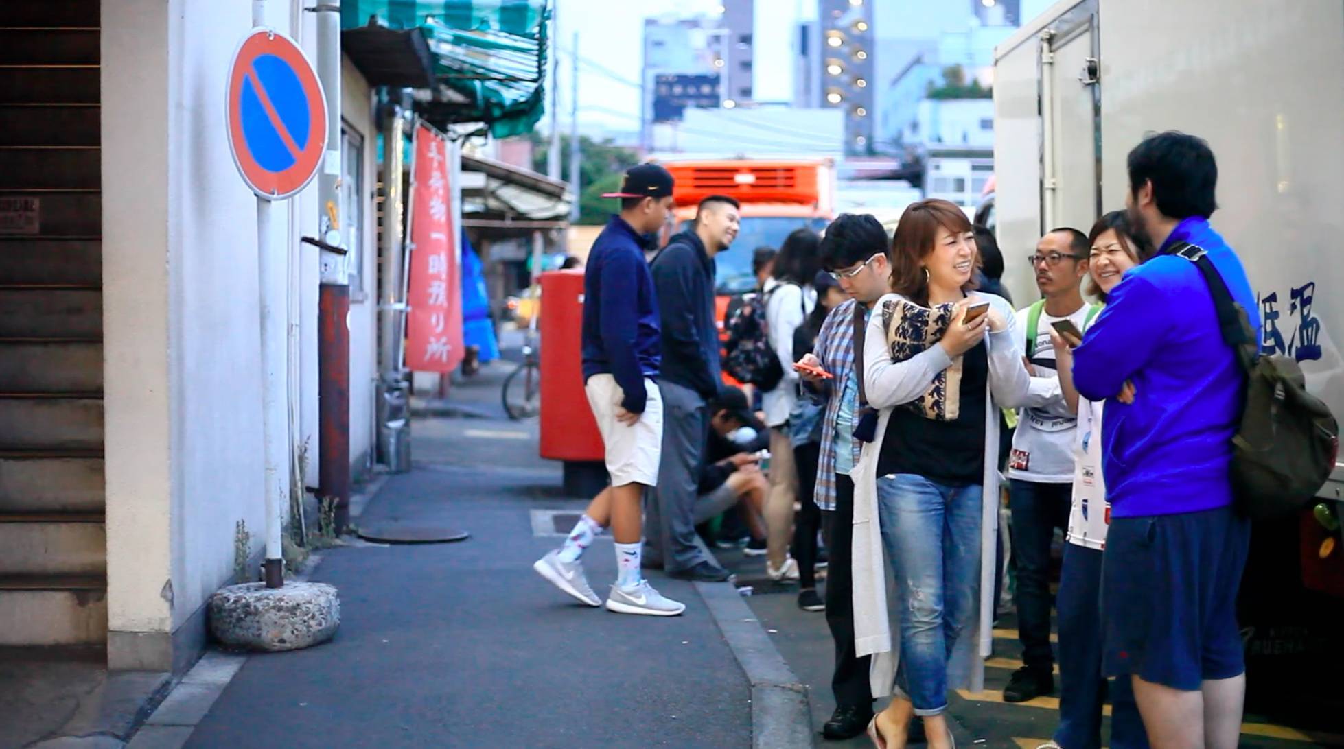 等待的头一个小时很快就过去,眼看天色由暗转亮,眼看鱼市熙来攘往。第二个小时来了几位日本老头儿,领头的是个日本老太太,特别能侃特别爱演,英语还不错。跟她聊聊天飙飙演技时间也打发了。第三小时最难熬,原本以为差不多快排到了,竟如此漫长,这一小时跟一个台湾小弟聊了聊东京美食攻略,其间他不停称呼我“这位大哥”。第四小时简直变成麻木,心想去你妈的有那么好吃吗?