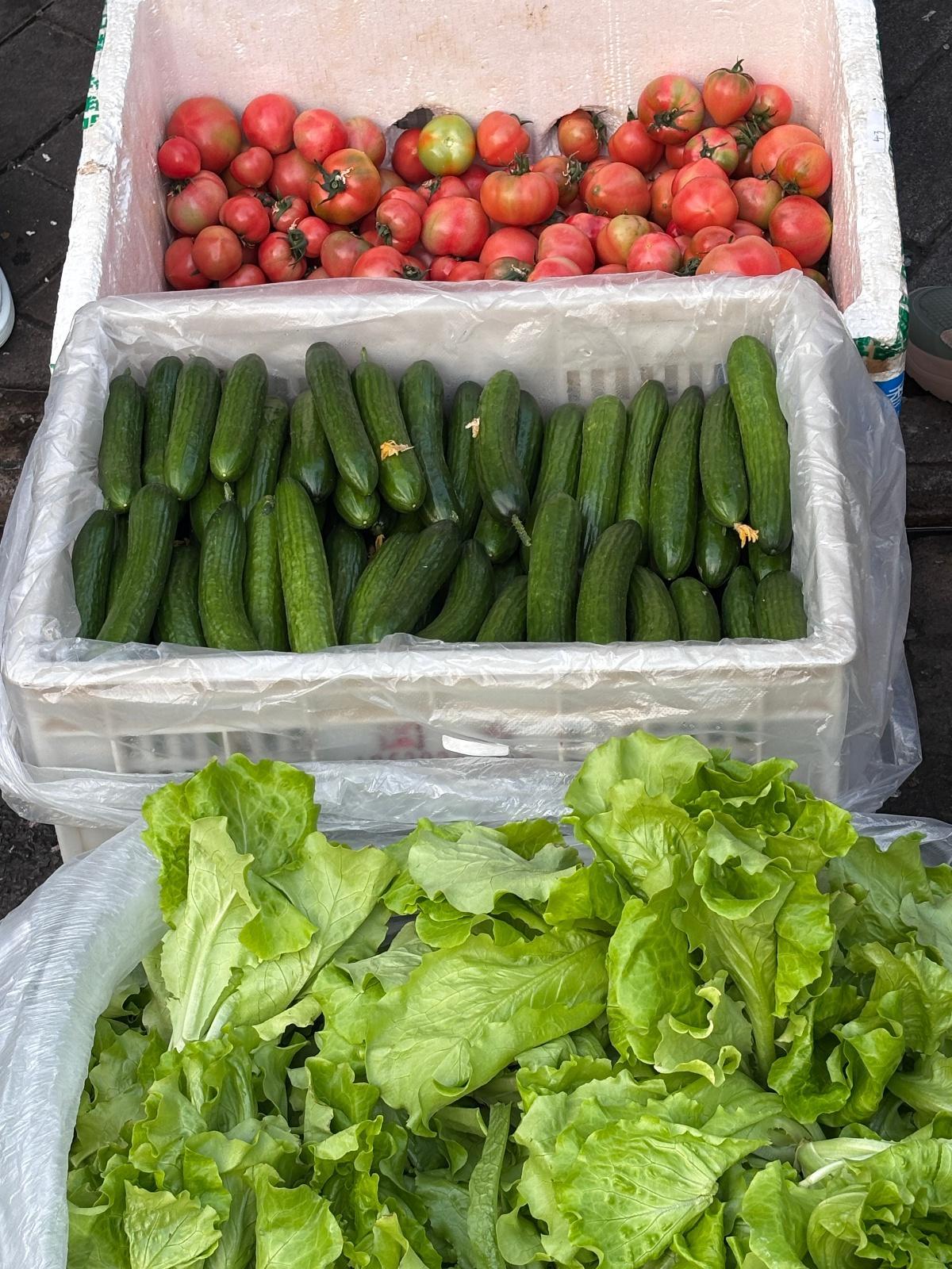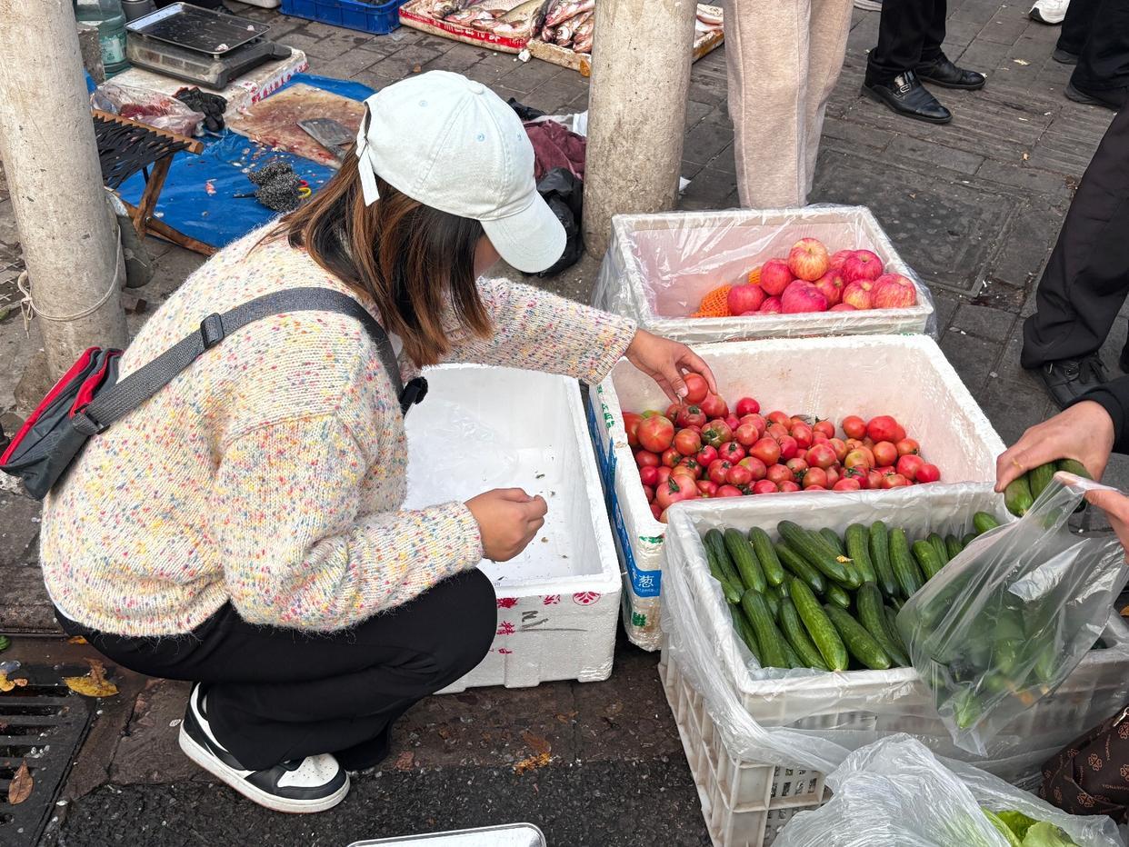 她的摊位正对路口,常有迎面而来的行人经过。她把颜色鲜艳的番茄摆在最外侧,再依次码放绿色蔬菜,“从红色到绿色,这样顾客看着舒服。”遇到顾客犹豫时,她会随手掰开一个新鲜番茄,露出沙瓤的质地给大家看。“留住顾客的关键还是服务态度,”她总结道。