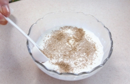 Step 1:鲜奶加糖搅匀,放入微波炉煮暖取出,洒入酵母粉,等候10分钟。