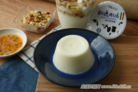 食材:鲜乳250ml、吉利丁片(明胶)3片、水50ml、二号砂糖15g。(甜度可依喜好调整。)